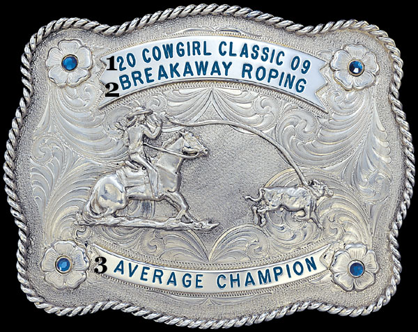 trophy buckle with four stones and up to three lines of engraving and your choice