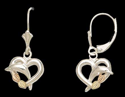 Very sweet Black Hills Gold dolphins jump through sterling silver