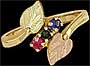 A 10 karat yellow gold shank and 12 karat rose gold and green gold grape
