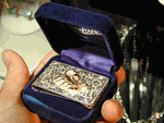 * The State of Texas seal on a silver engraved, hinged money clip.